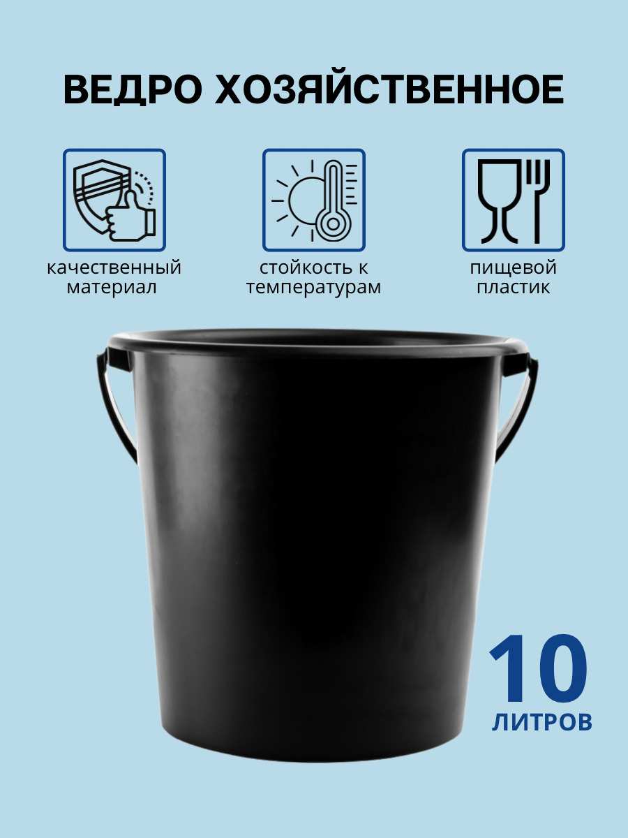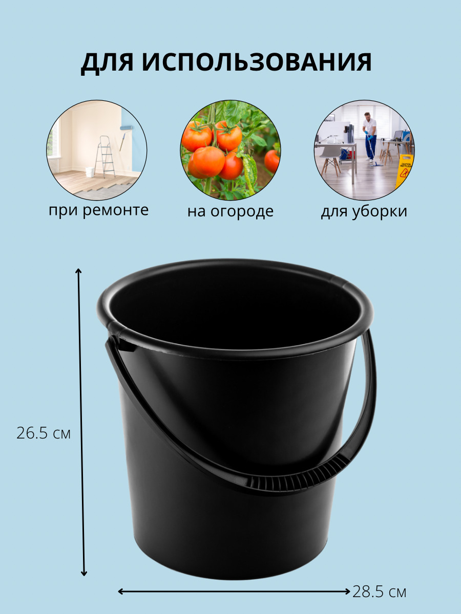 Ведро Альтернатива Эконом, ведро пластиковое, ведро хозяйственное, ведро для уборки, черное, 10 л
