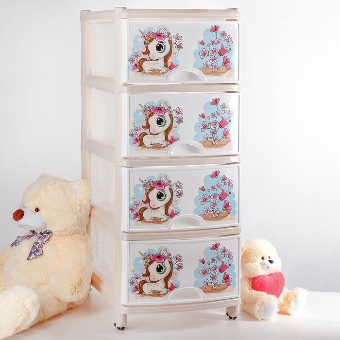 Комод детский 4-х секционный Сказочное королевство на колёсиках