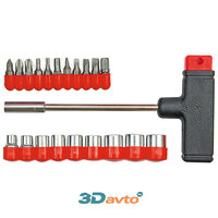 Отвертка Т-образная TOYA 20 предметов с набором бит и торцевых головок