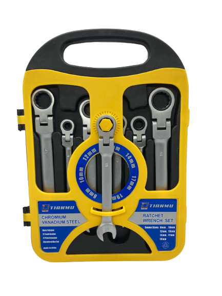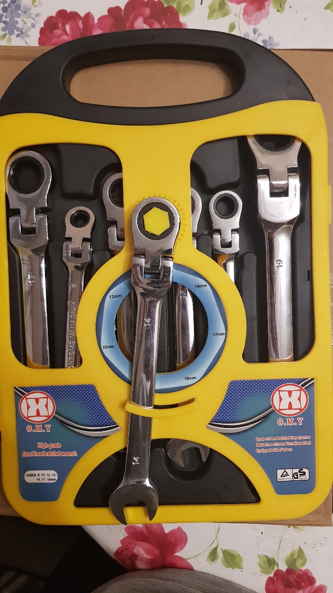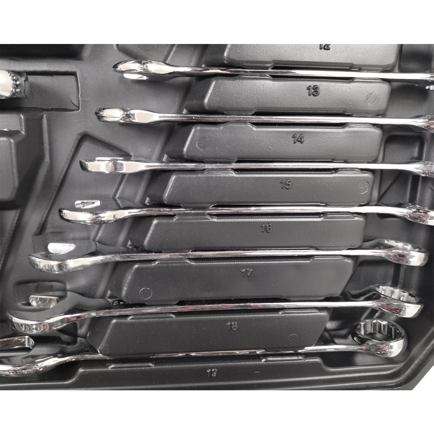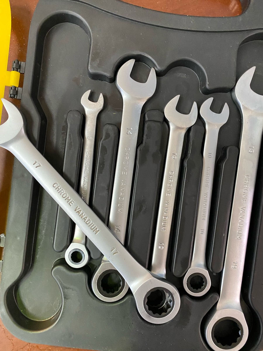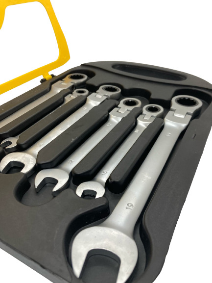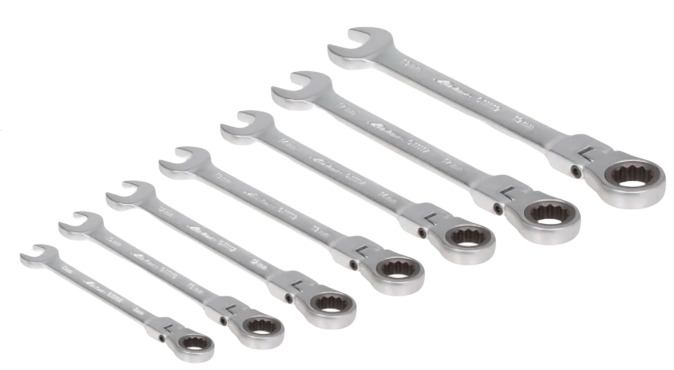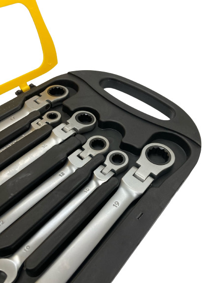 Набор комбинированных накидных ключей с трещоткой 7 предметов - 8, 10, 12, 13, 14, 17, 19 мм/Набор