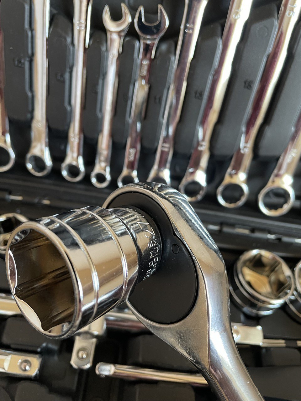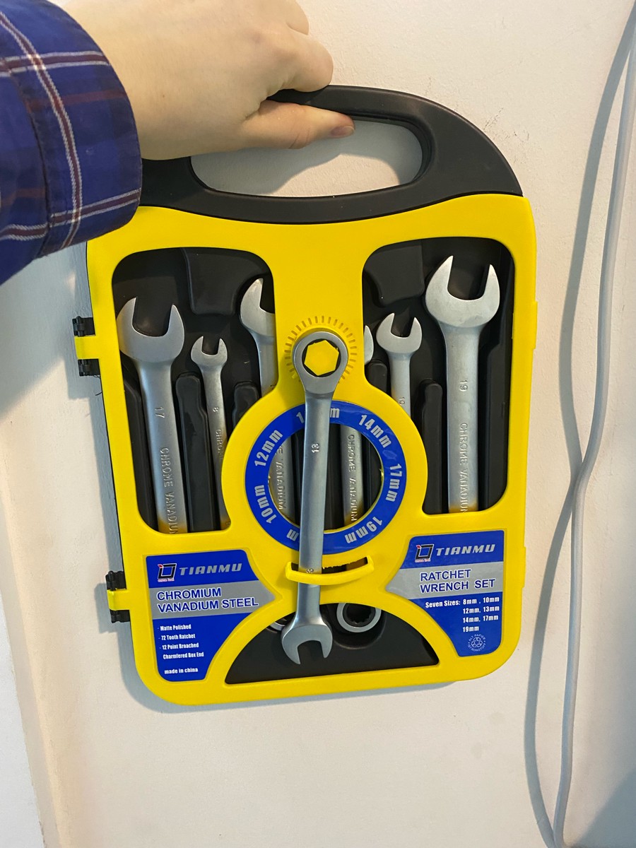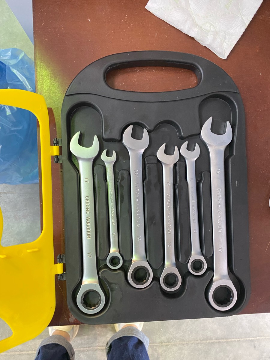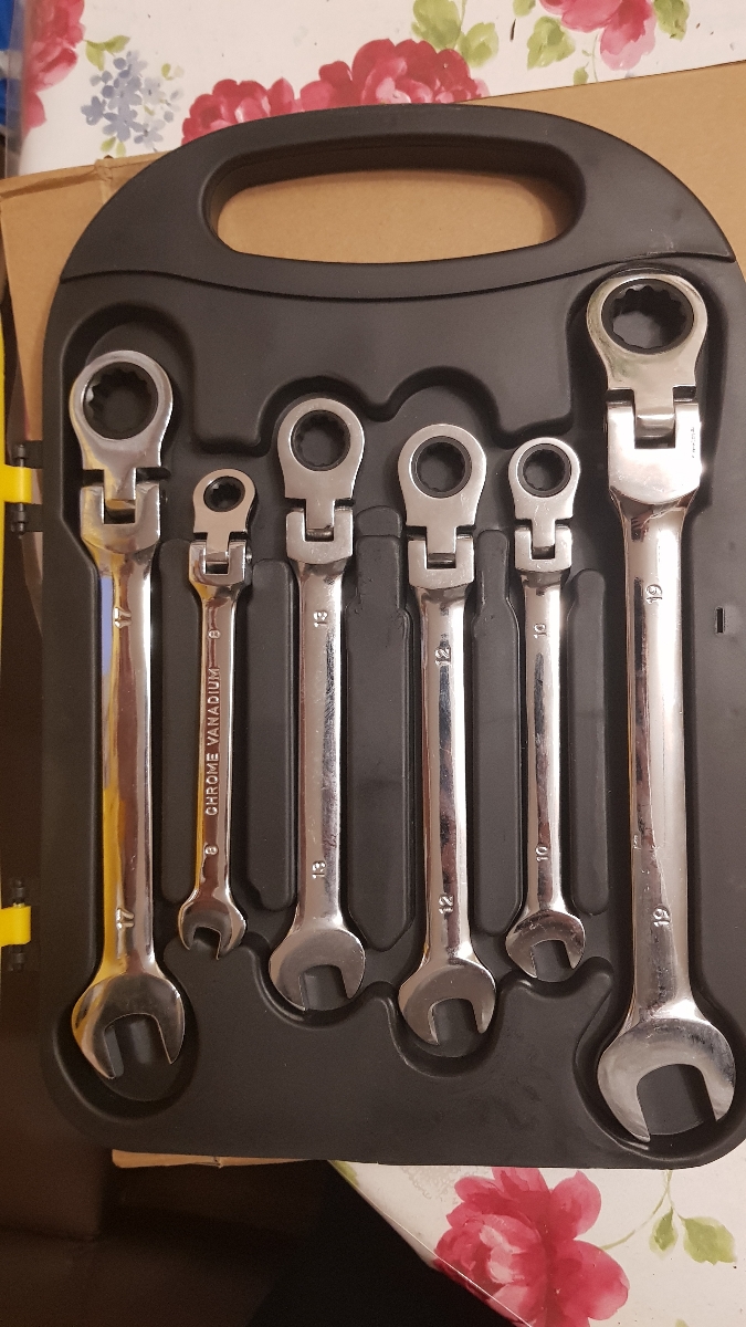 Набор комбинированных накидных ключей с трещоткой 7 предметов - 8, 10, 12, 13, 14, 17, 19 мм/Набор