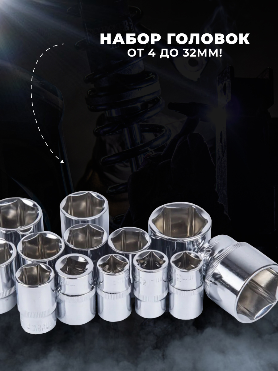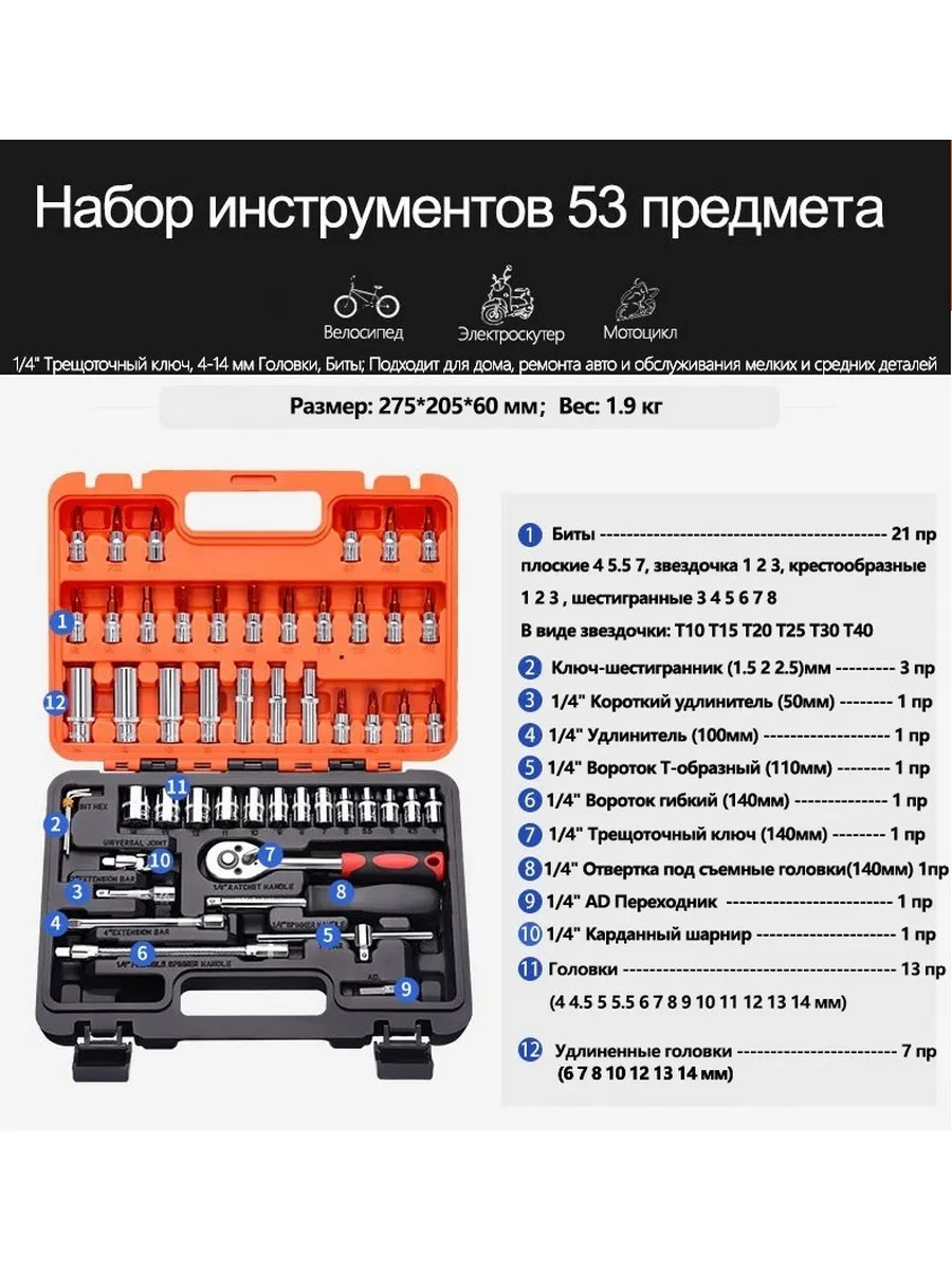 Набор инструментов 17пр., 1/4'',6гр. (4-13мм) KT-17