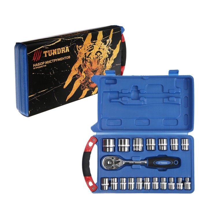 Набор инструментов в кейсе ТУНДРА, подарочная упаковка "Тигр", CrV, 1 2", 19 предметов