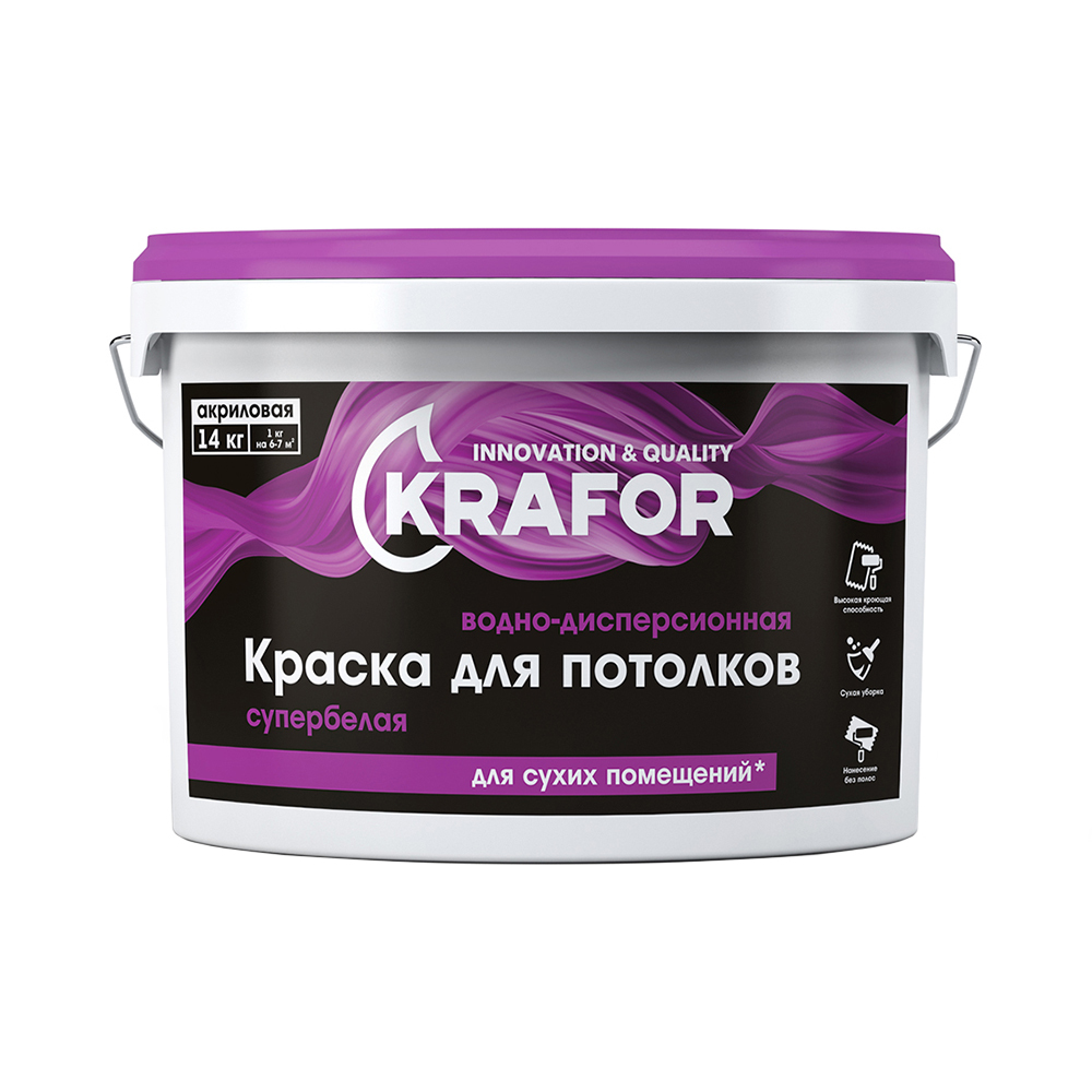Краска водно-дисперсионная для потолков Krafor, матовая, 1,5 кг, супербелая