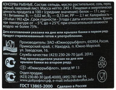Сельдь "Доброфлот" тихоокеанская с добавлением масла, 245г