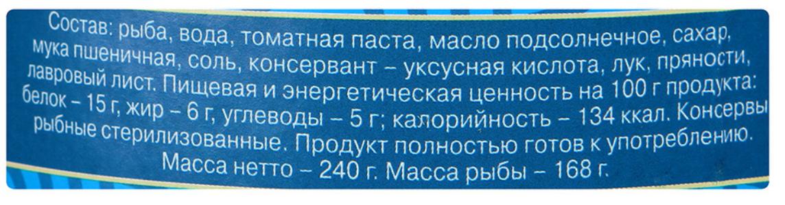 Карась "5 Морей" обжаренный, в томатном соусе, 240г