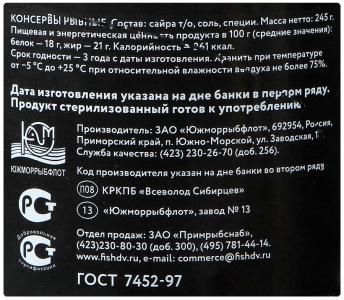 Сайра "Доброфлот" тихоокеанская с маслом, 245г