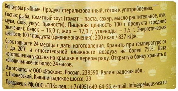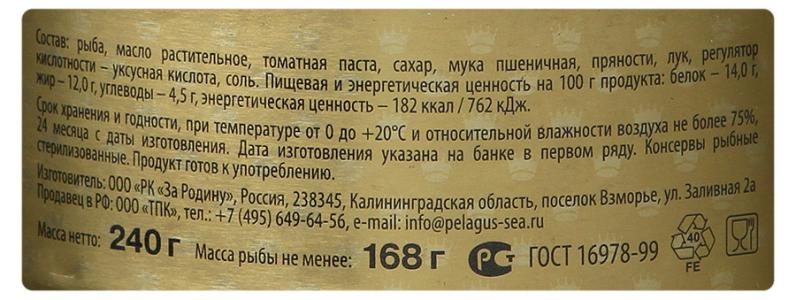 Сардина "Пелагус" атлантическая, в томатном соусе, 230г