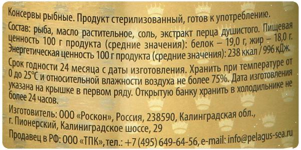 Сардина "Пелагус" атлантическая, с добавлением масла, 230г