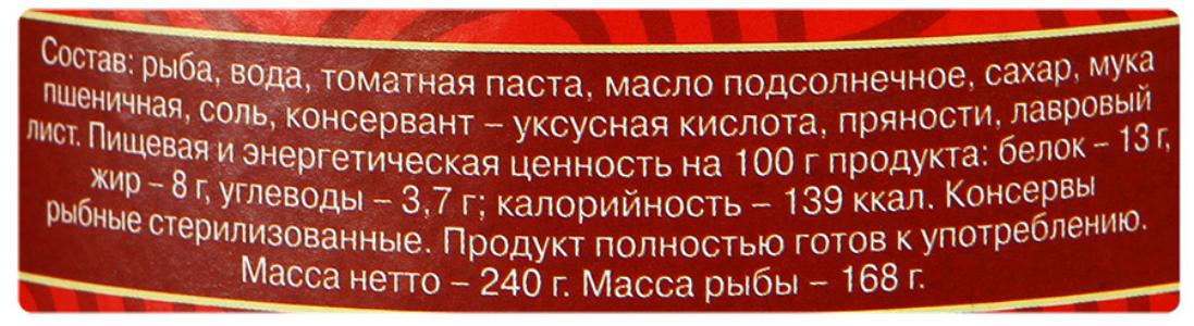 Карась "5 Морей" обжаренный, в томатном соусе, 240г