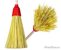 Метла пластиковая №1, плоская мягкая с деревянным черенком 260х330х1480 мм курс 68073