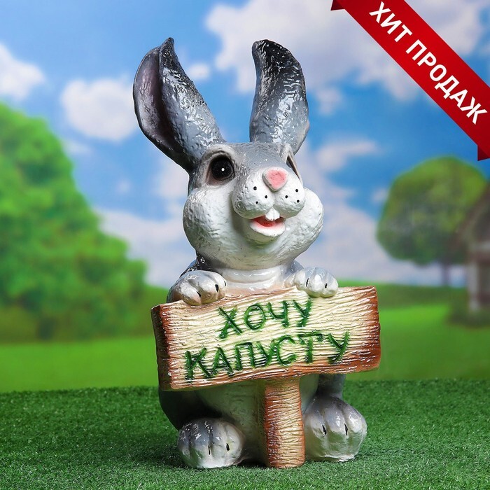 Садовая фигура "Заяц хочу капусту" 24х22х42см