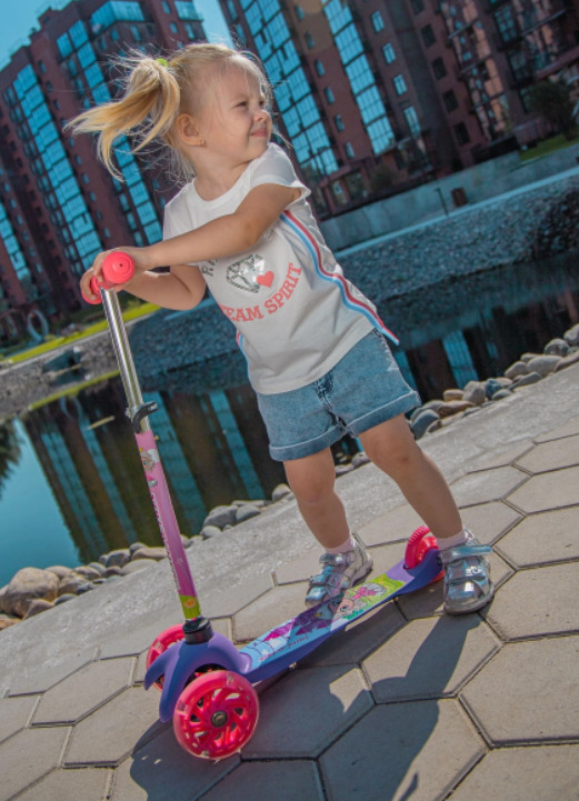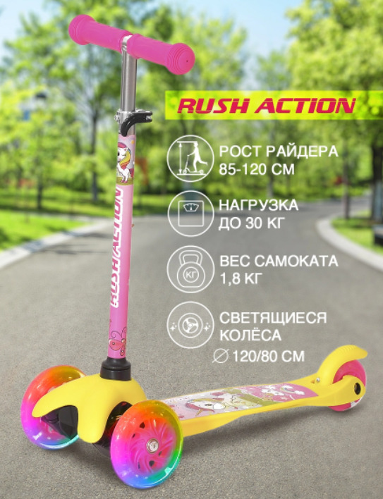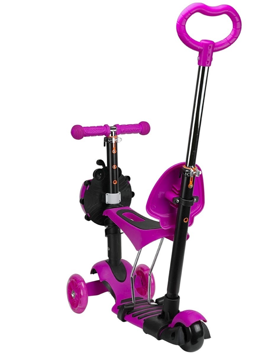 Самокат 5в1 Сидением, Светящимися колесами и Корзиной, 120 мм