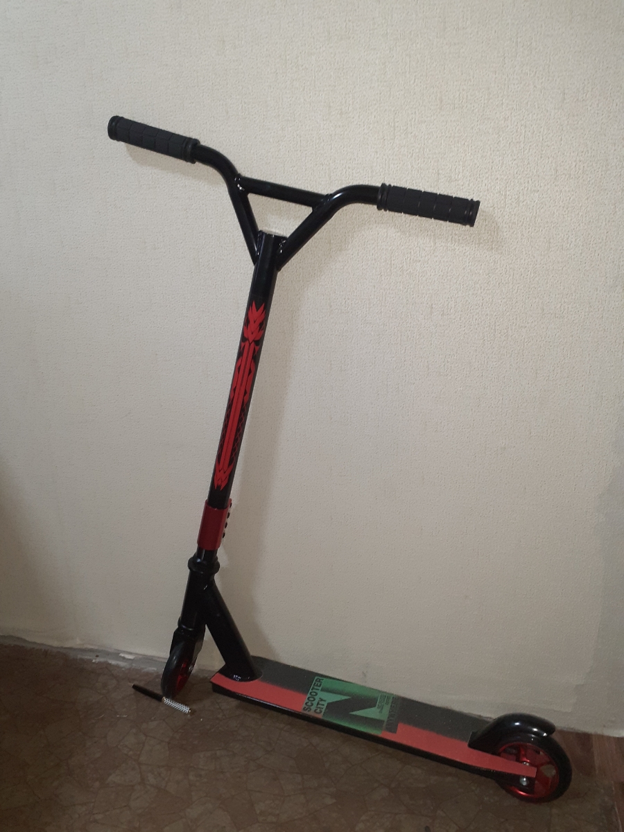 Самокат трюковый скутер для детей и подростков, красный+черный, сталь+полиуретан