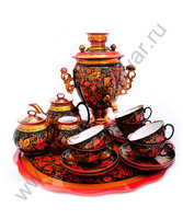 Самовар «Хохлома» электрический формой желудь 3л в наборе с чайным сервизом и подносом