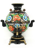 Электрический самовар "Шар", 3 литра с росписью "Жостово белый букет"