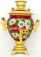 Электрический самовар "Желудь", 3 литра с росписью "Маки с ромашками на красном"