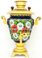 Электрический самовар "Рюмка", 3 литра с росписью "Маки с ромашками на синем"