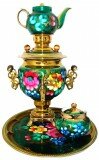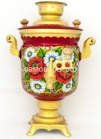 Самовар 3 л с художественной росписью "Цветы на зеленом"в наборе (овал)