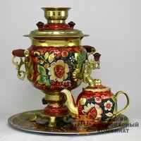 Набор «Цветы на золоте» самовар, поднос, чайник