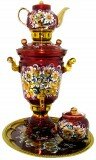 Самовар 3 л с художественной росписью "Кудрина на бордо" в наборе (овал)
