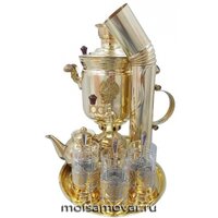 Самовар угольный 5,5 л. никель+золото (С.2001/2)