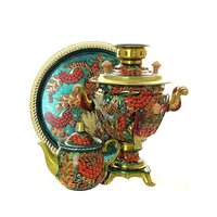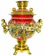 Самовар электрический 3 л с художественной росписью "Кудрина на красном с зеленью"(овал)