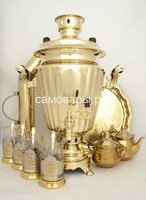 Угольный (на дровах) самовар на 5л "Рюмка гранная" в VIP наборе