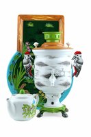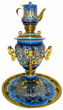 Электрический самовар 3 л с художественной росписью "Кудрина синяя" в наборе (желудь)