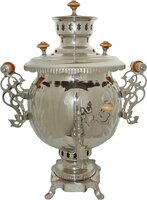 Самовар жаровый, на дровах, объемом 5 л "Люкс" никелированный формы гладкая рюмка в наборе