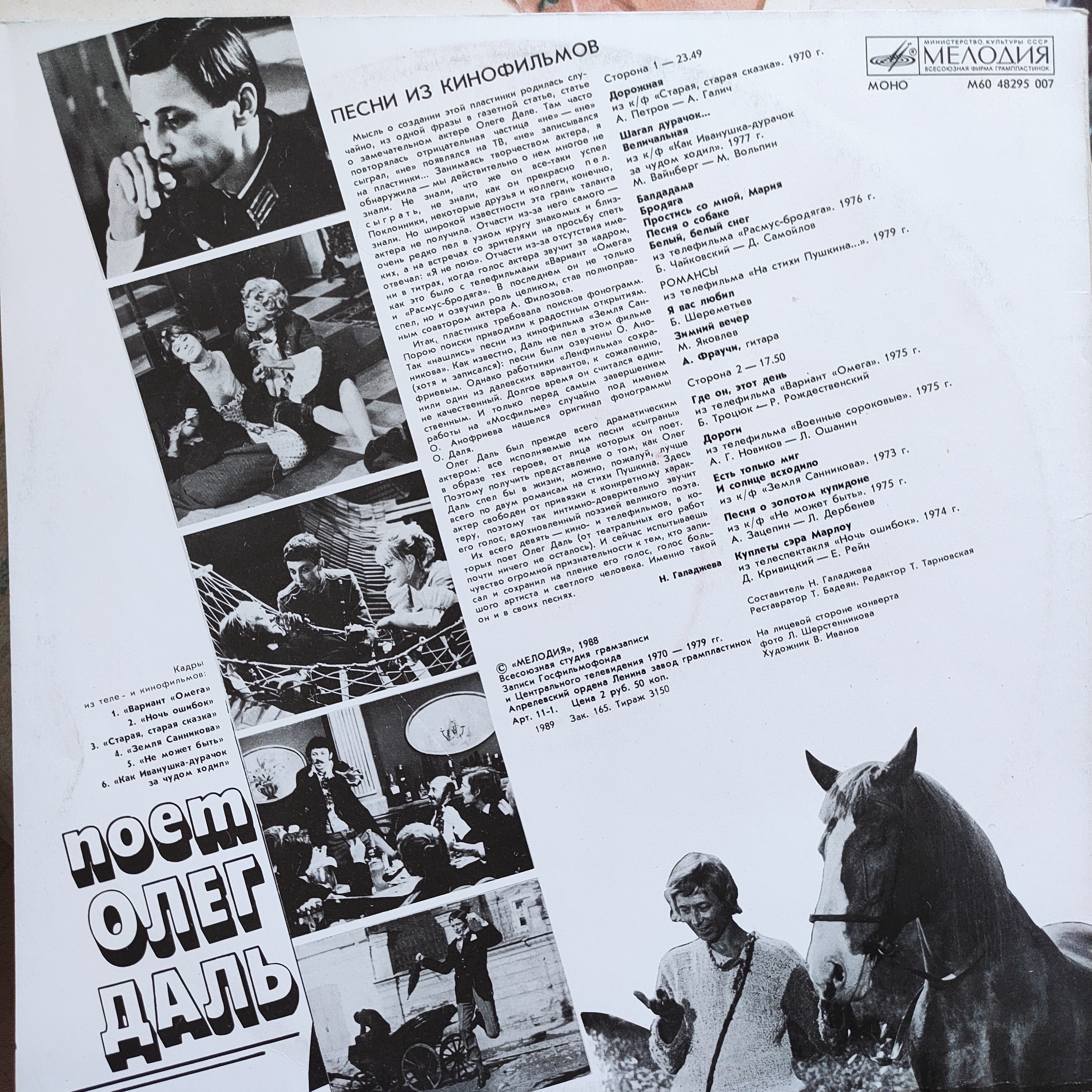 Виниловая пластинка. Поет Олег Даль: "Песни из кинофильмов". В идеале