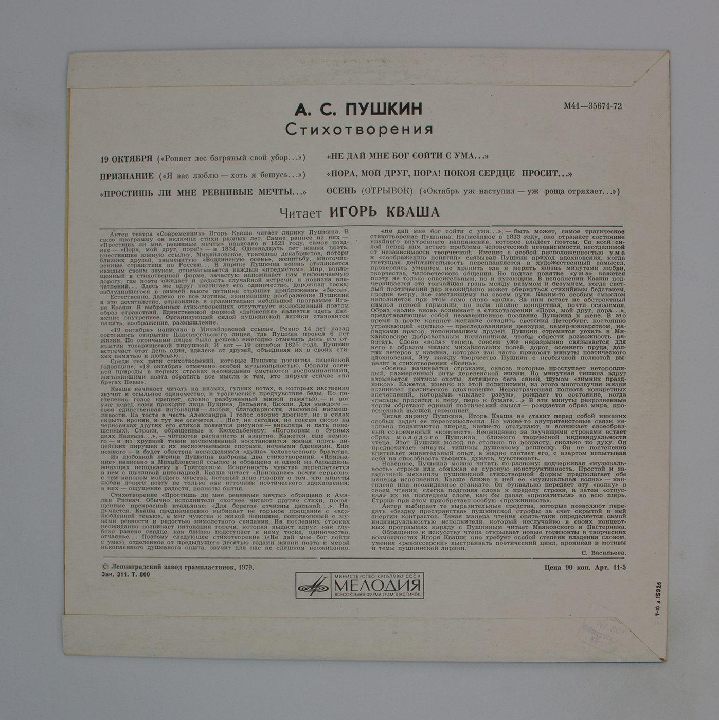 Виниловая пластинка А. С. Пушкин - Стихотворения, - 10'