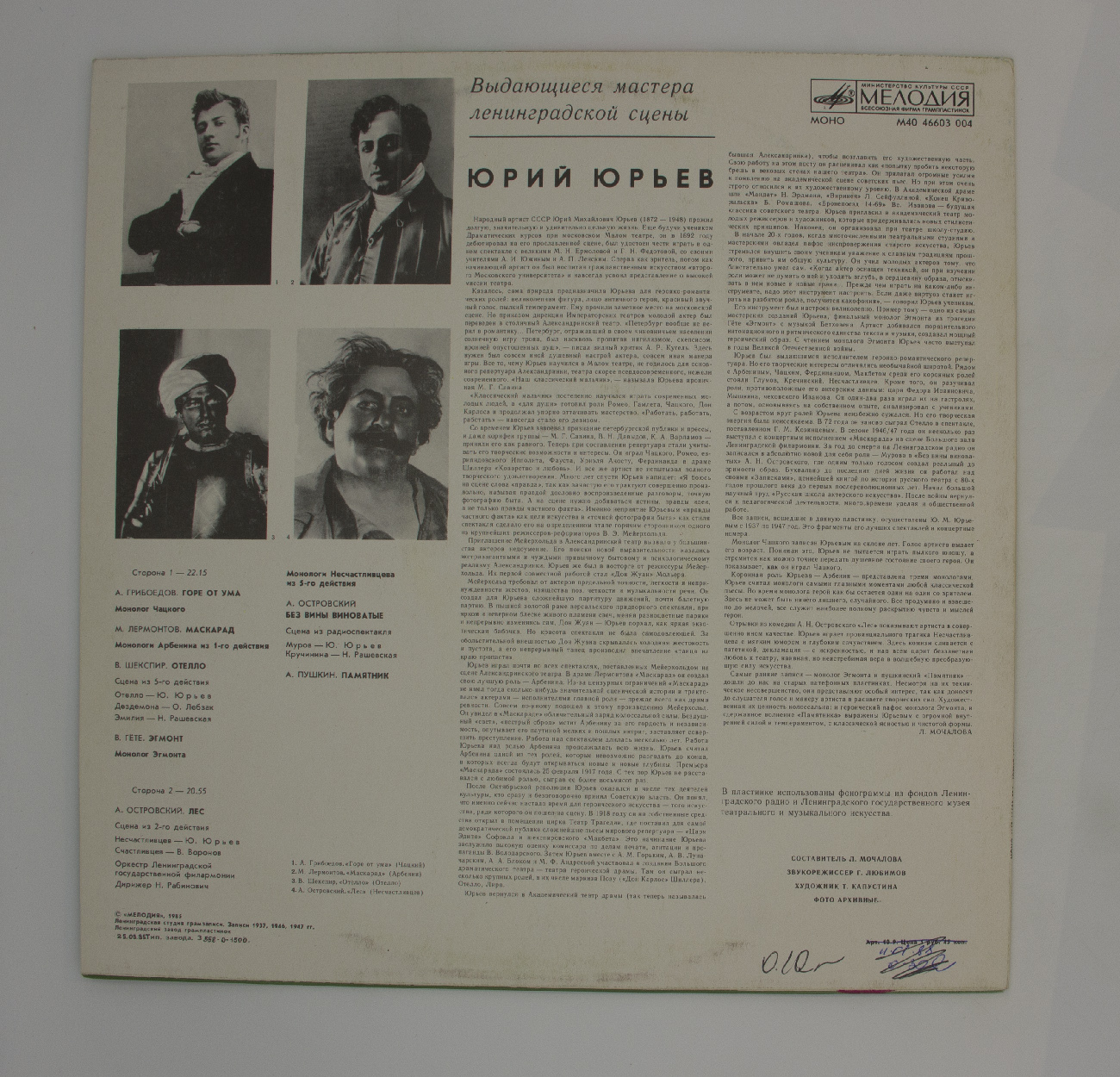 Виниловая пластинка Юрий Юрьев - Юрий юрьев, - LP