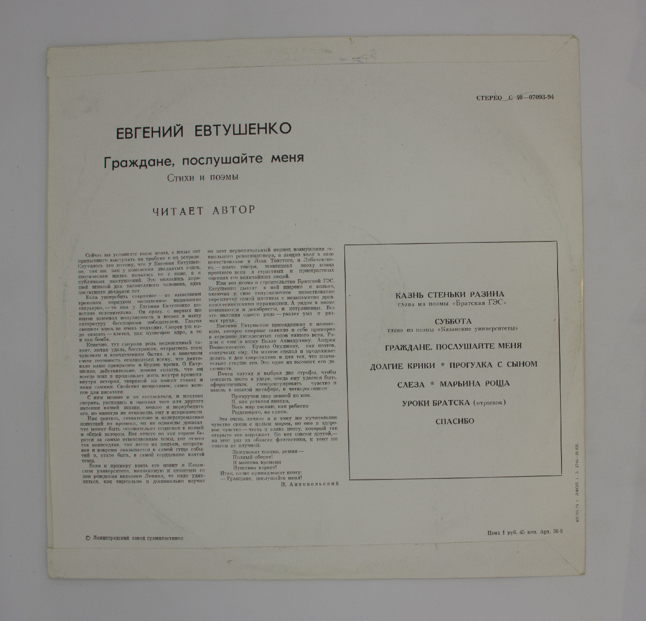 Е. Евтушенко - Граждане, послушайте меня (стихи и поэмы), LP