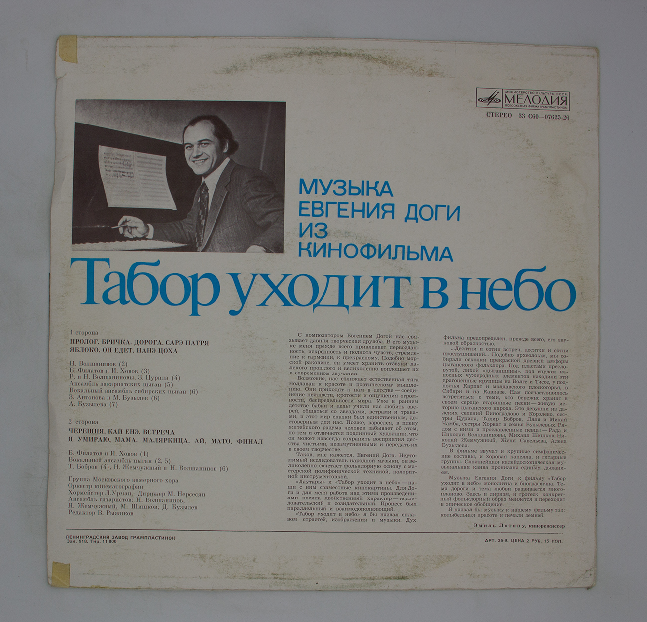 Виниловая пластинка Евгений Дога - Музыка евгения доги из кинофильма табор уходит в небо - LPx1