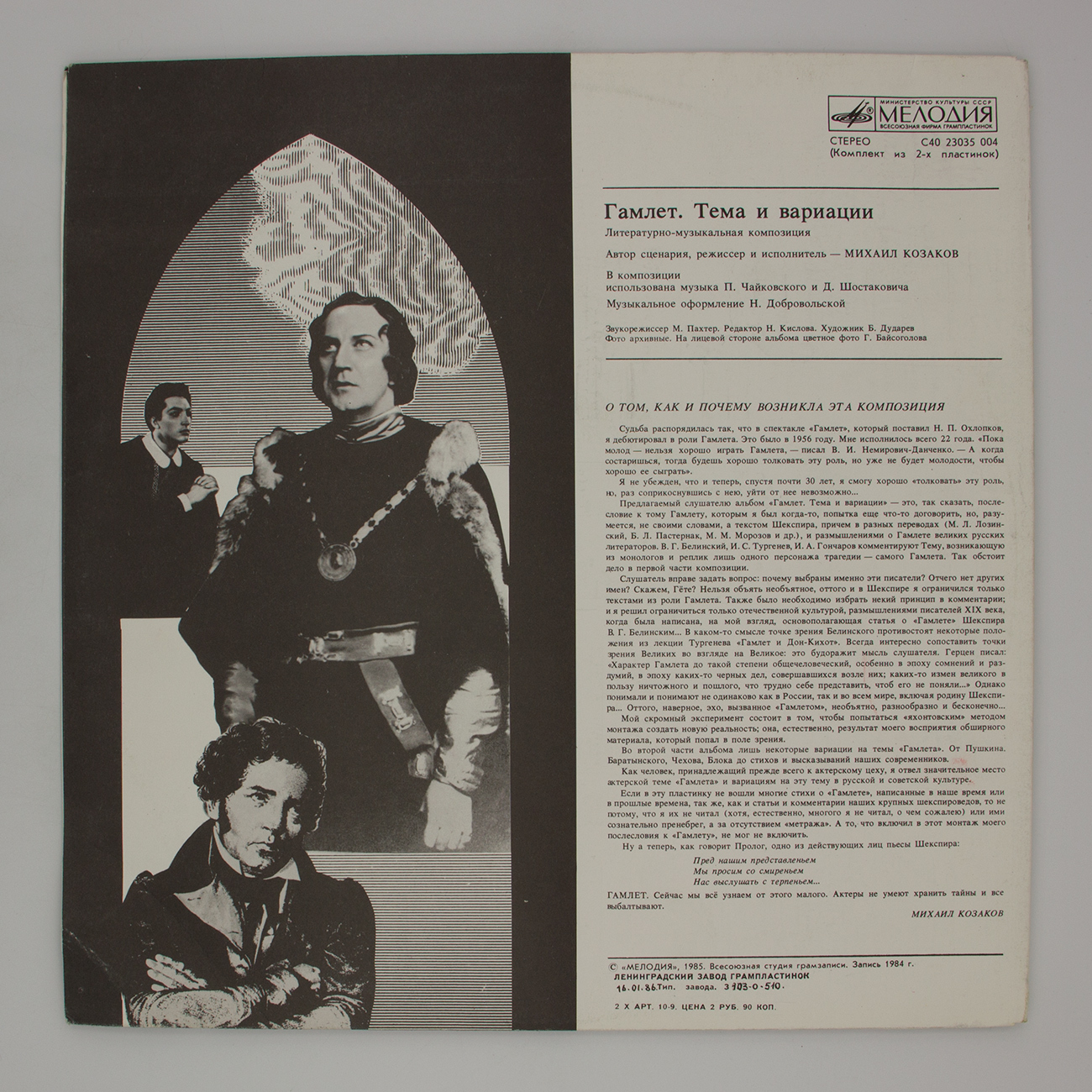 Виниловая пластинка Михаил Козаков - Гамлет. тема и вариации- (LPx2)