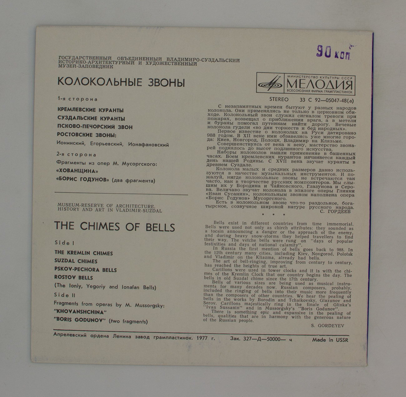 Виниловая пластинка Колокольные Звоны - Колокольные звоны, - 7' (миньон)