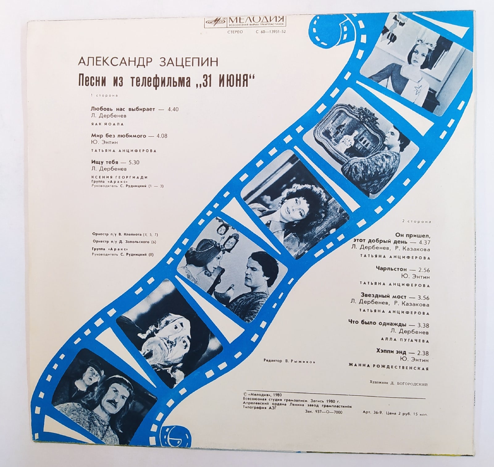 Виниловая пластинка винтажная Александр Зацепин Песни Из Телефильма 31 Июня