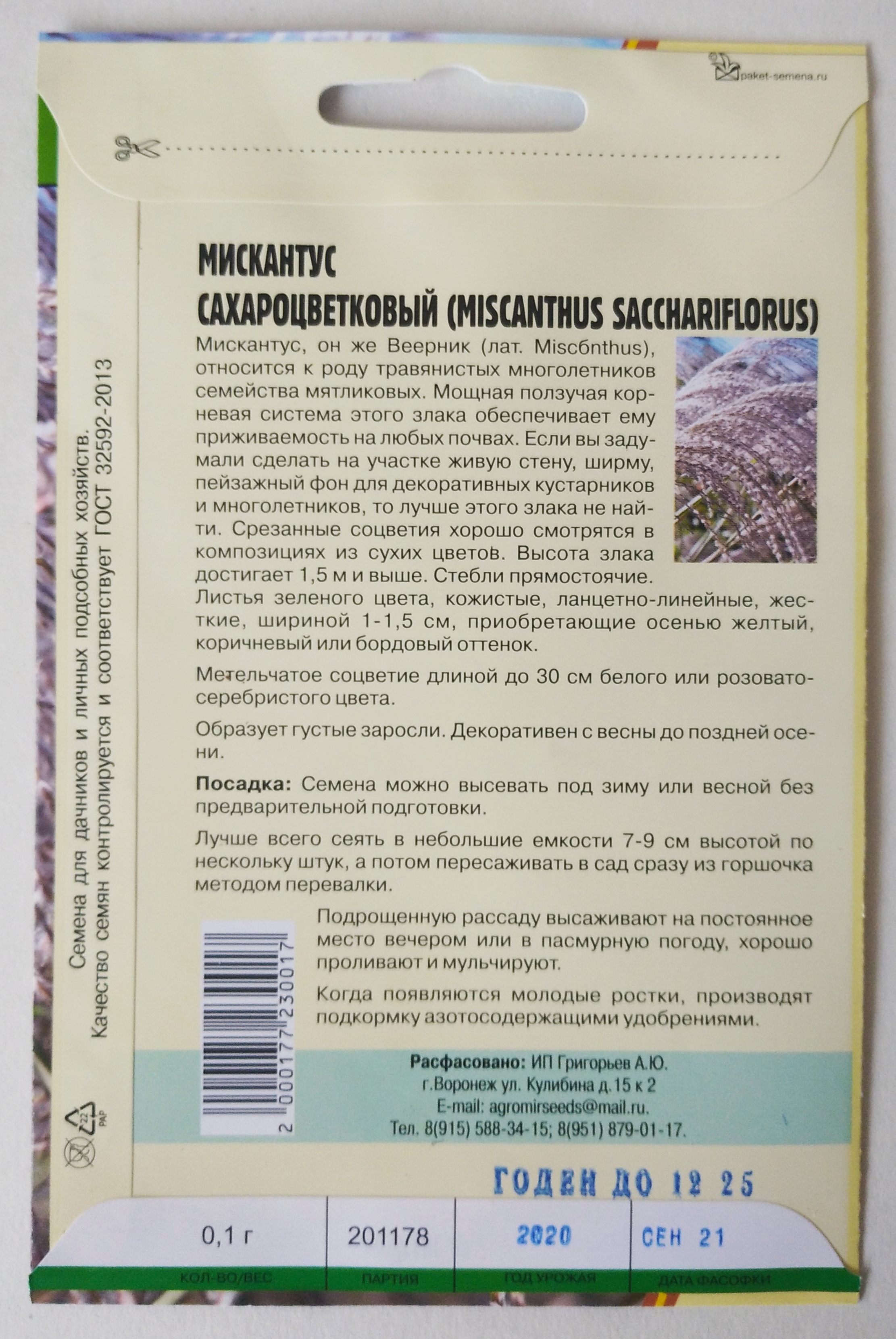Семена редких злаков: Мискантус сахароцветковый 10шт