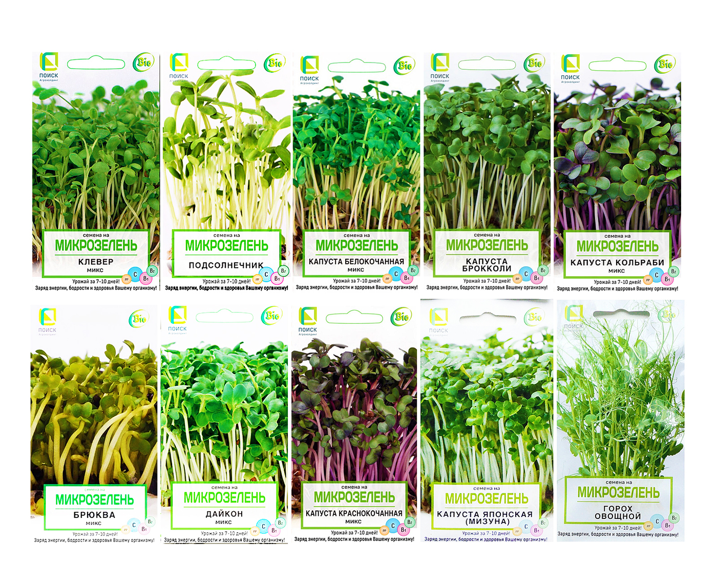 Семена микрозелени. Набор из 10 упаковок. VEGAN. Агрофирма Поиск