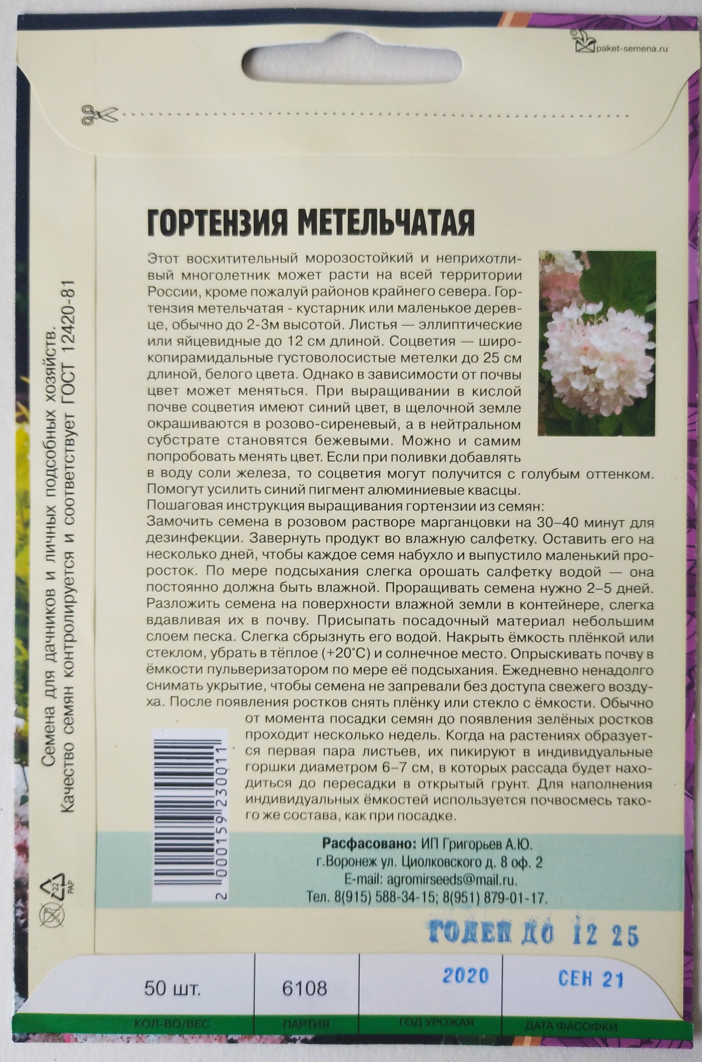 Семена редких многолетников: Гортензия метельчатая 50шт семян