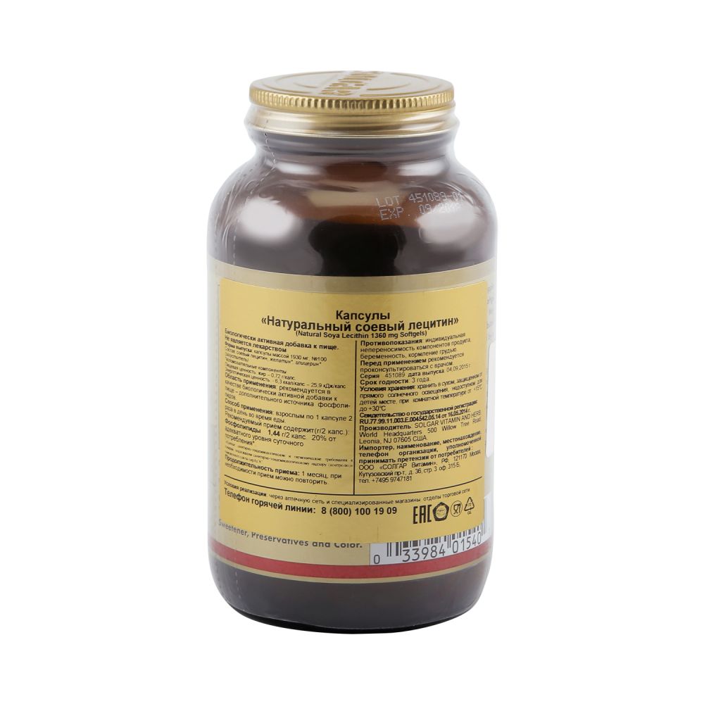 Солгар Натуральный соевый лецитин капс. 1360мг №100