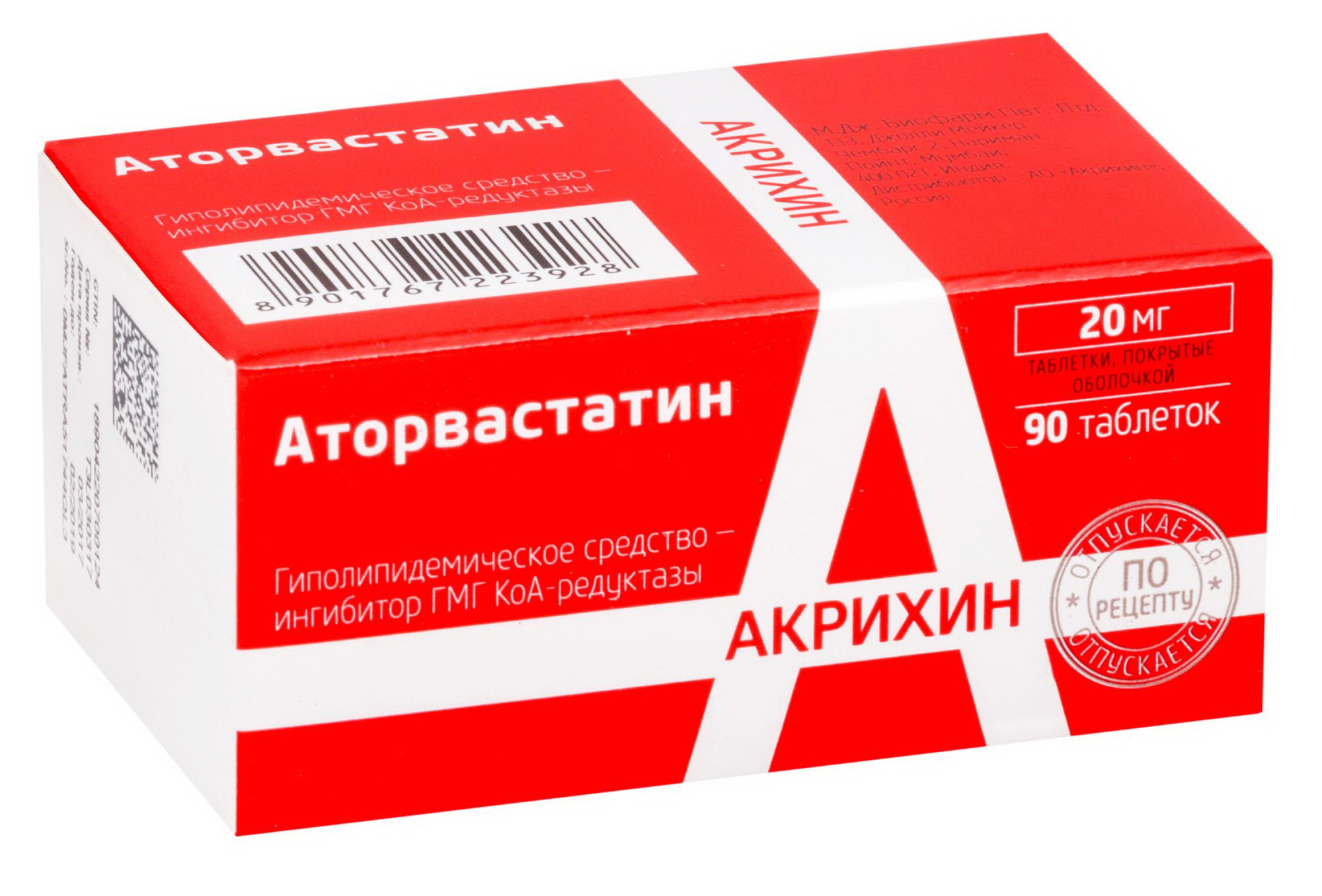 Аторвастатин-акрихин 20 мг 90 шт. таблетки, покрытые оболочкой
