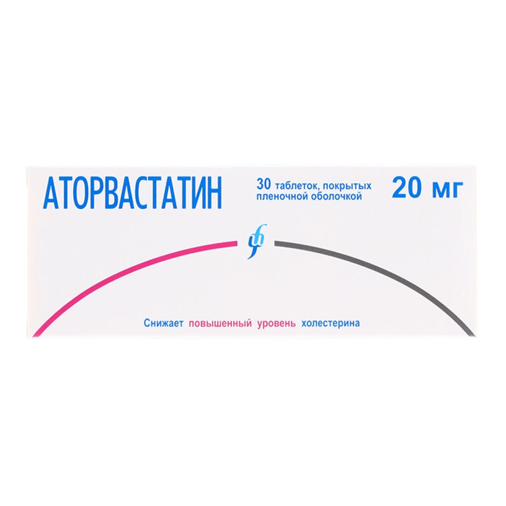 Аторвастатин 20 мг 30 шт. таблетки, покрытые пленочной оболочкой
