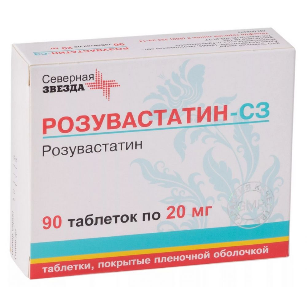 Розувастатин-сз 20 мг 90 шт. блистер таблетки, покрытые пленочной оболочкой