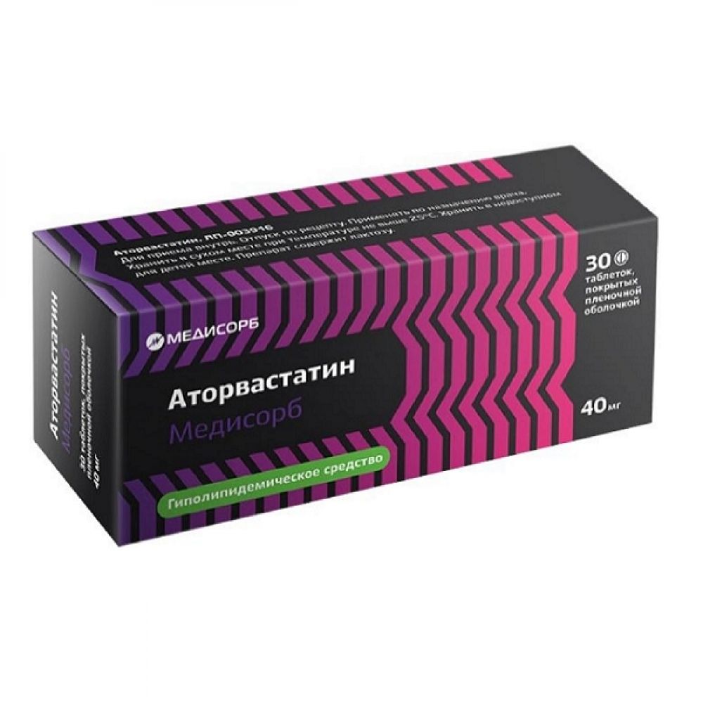 Аторвастатин медисорб 40 мг 30 штук таблетки, покрытые пленочной оболочкой