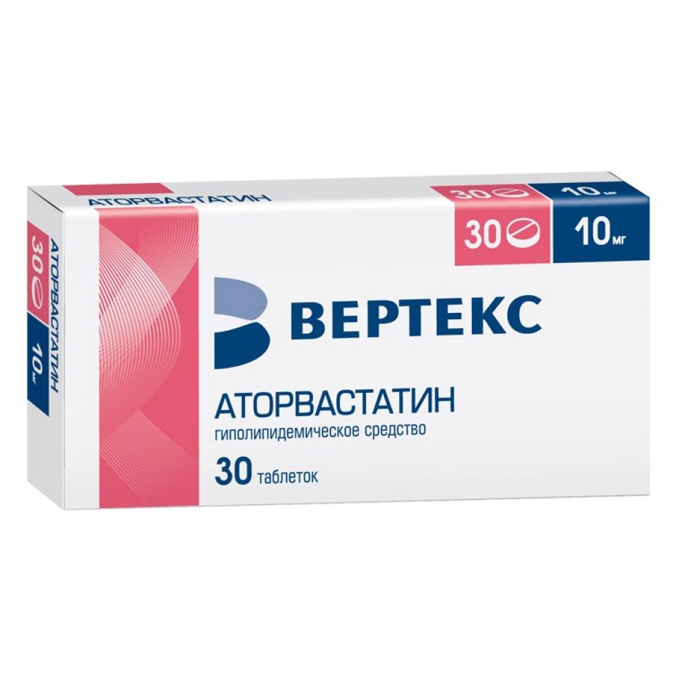 Аторвастатин-вертекс 10 мг 30 штук таблетки, покрытые пленочной оболочкой блистер