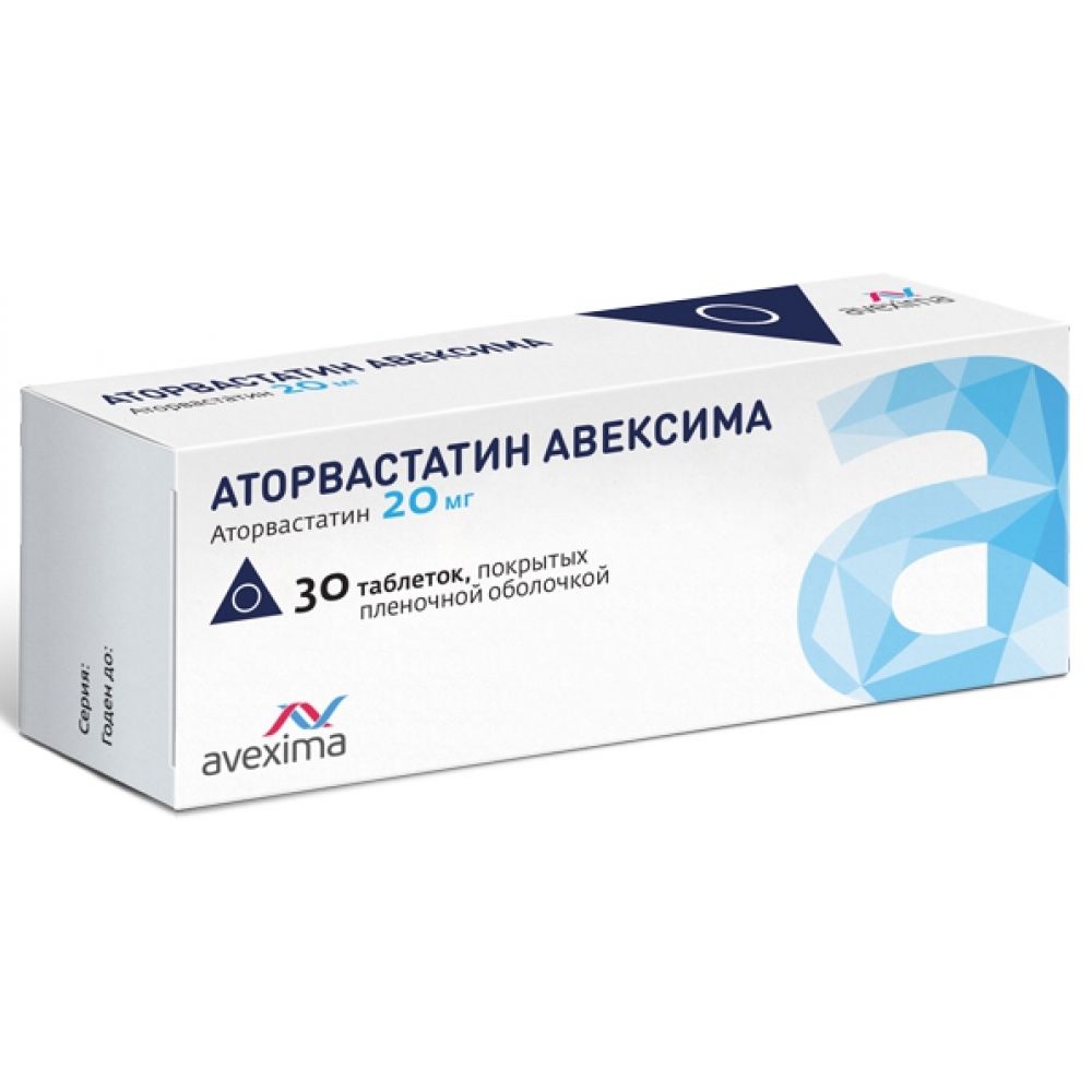 Аторвастатин авексима 20 мг 30 шт. таблетки, покрытые пленочной оболочкой