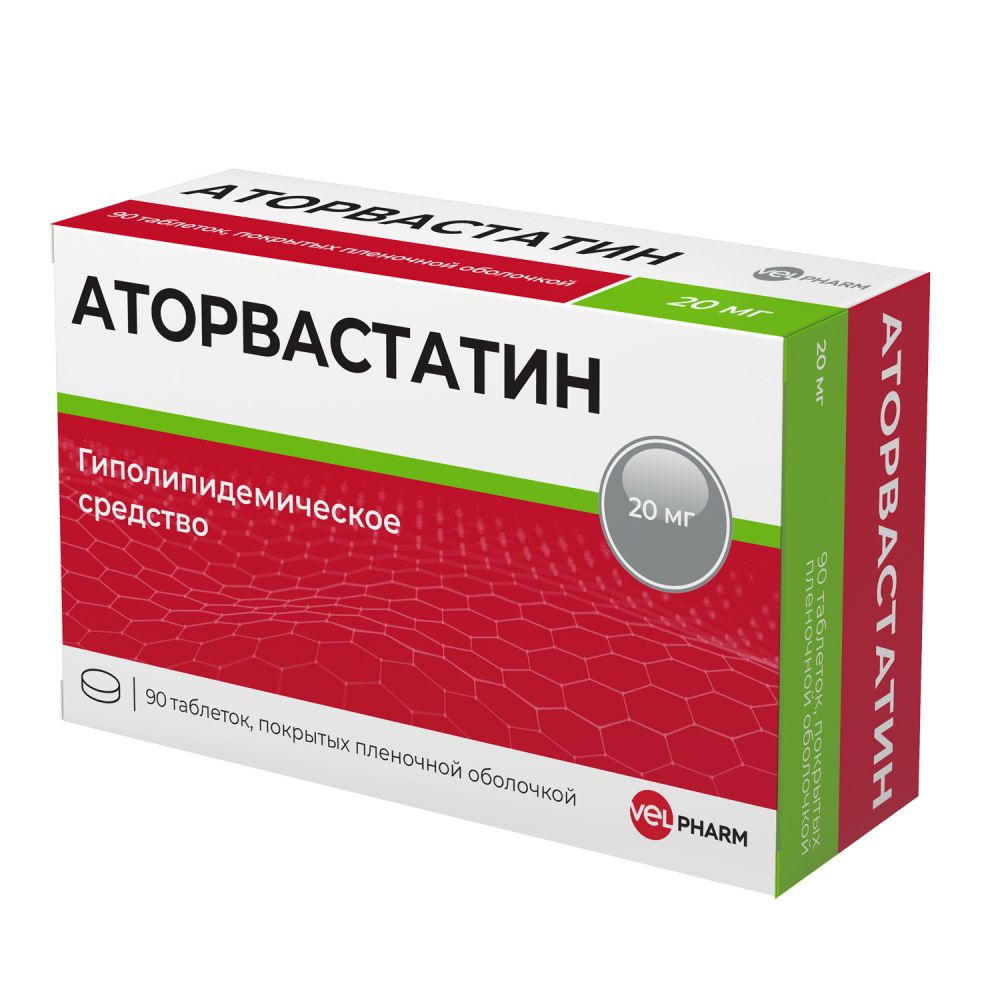 Аторвастатин 20 мг 90 шт. таблетки, покрытые пленочной оболочкой