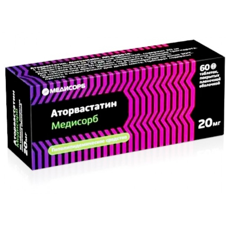 Аторвастатин медисорб 20 мг 60 штук блистер таблетки, покрытые пленочной оболочкой